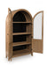 This accent cabinet is a stunning marriage of architectural intrigue and sophisticated storage. Its glass-paneled doors and natural wood tone create an inviting warmth well-suited to transitional spaces. Ideal for showcasing fine china or storing everyday essentials, this versatile piece proves that practical storage can be utterly beautiful.