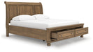 Feddinger California King Storage Sleigh Bed with Mirrored Dresser