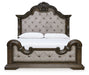 Maylee California King Upholstered Bed with Mirrored Dresser and Nightstand