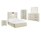 | Details | B192-46: Made of engineered wood (MDF/particleboard) and decorative laminate, Wispy white finish over replicated oak grain with authentic touch, Large-scale hardware with dark finish, 5 smooth-gliding drawers, Drawer interiors are lined with a faux linen laminate for a clean, finished look, Safety is a top priority, clothing storage units are designed to meet the most current standard for stability, ASTM F 2057 (ASTM International), Drawers extend out to accommodate maximum access to drawer interior while maintaining safety, B192-92: Made of engineered wood (MDF/particleboard) and decorative laminate, Wispy white finish over replicated oak grain with authentic touch, Large-scale hardware with dark finish, 2 smooth-gliding drawers, Drawers lined with faux linen laminate for finished aesthetic, 2 slim-profile USB charging stations, Power cord included; UL Listed, B192B1: Includes dresser with mirror, Made of engineered wood (MDF/particleboard) and decorative laminate, Wispy white finish over replicated oak grain with authentic touch, 6 smooth-gliding drawers, Drawer interiors are lined with a faux linen laminate for a clean, finished look, Large-scale hardware with dark finish, Mirror attaches to back of dresser, Assembly required, B192B34: Includes headboard, footboard, side storage, rails and slats, Made of engineered wood (MDF/particleboard) and decorative laminate, Wispy white finish over replicated oak grain with authentic touch, Large-scale hardware with dark finish, Decorative sconce light, LED with 3 AA batteries, 4 smooth-gliding storage drawers, 4 storage cubbies, 2 slim-profile USB charging ports, Power cord included; UL-listed, Bed does not require additional foundation/box spring; accommodates most zero clearance adjustable bases with the addition of a bunkie board, Mattress available, sold separately, Assembly required, | |