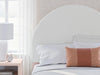 Details B1323B9: Includes upholstered panel headboard, platform rails, panel footboard and roll slats, Made with engineered wood (MDF/particleboard/plywood) and decorative laminate for the right balance of affordability and durability, Subtle blush finish over replicated pecan wood grain, Decorative laminate replicates natural or man-made material surfaces with consistent color, pattern and texture, Polyester upholstery, Bed does not require a foundation/box spring, Mattress available, sold separately, Minor assembly required, B1323B1: Includes dresser and mirror, Made with engineered wood (MDF/particleboard/plywood) and decorative laminate for the right balance of affordability and durability, Subtle blush finish over replicated pecan wood grain, Decorative laminate replicates natural or man-made material surfaces with consistent color, pattern and texture, Champagne colored knobs, 6 smooth-gliding drawers , Drawer interiors are lined with a faux linen laminate for a clean, finished look, Mirror can be attached to back of dresser or wall mounted horizontally or vertically, Safety is a top priority, clothing storage units are designed to meet the most current standard for stability, ASTM F 2057 (ASTM International) , Drawers extend out to accommodate maximum access to drawer interior while maintaining safety, Minor assembly required, B1323-91: Made with engineered wood (MDF/particleboard/plywood) and decorative laminate for the right balance of affordability and durability, Subtle blush finish over replicated pecan wood grain, Decorative laminate replicates natural or man-made material surfaces with consistent color, pattern and texture, Champagne colored knobs, 1 smooth-gliding drawer, 1 open shelf, Drawer interiors are lined with a faux linen laminate for a clean, finished look, 2 slim-profile USB charging ports, Power cord included; UL Listed, Minor assembly required,