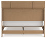 Clean-lined and contemporary—but far from stark—this bedroom package is a fresh style awakening. Pairing a light finish with replicated oak grain and textured beige cane details, its mixed materials bring a naturally versatile vibe to your bedroom. Sleek, simple hardware plays perfectly with the modern aesthetic.