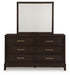 Neymorton Queen Upholstered Panel Bed with Mirrored Dresser