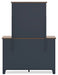 Details B414-53: Made with hardwood solids, mindi wood veneer and MDF substrates, Two-tone finish features a dark slate blue with a light brown wood-tone top, ¼" bolts (not included) are needed to attach headboard to your existing bed frame, Assembly required, B414B1: Includes dresser and mirror, Made with hardwood solids, mindi wood veneer and MDF substrates, Two-tone finish features a dark slate blue with light brown wood-tone top, Nickel-tone metal knobs, 6 drawers with fully finished interior, dovetail construction and heavy duty ball-bearing side glides, Mirror attaches to back of dresser, B414-45: Made with hardwood solids, mindi wood veneer and MDF substrates, Two-tone finish features a dark slate blue with a light brown wood-tone top, Nickel-tone metal knobs, 4 drawers with fully finished interior, dovetail construction and heavy duty ball-bearing side glides, B414-92: Made with hardwood solids, mindi wood veneer and MDF substrates, Two-tone finish features a dark slate blue with a light brown wood-tone top, Nickel-tone metal knobs, 2 drawers with fully finished interior, dovetail construction and heavy duty ball-bearing side glides,