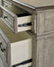 Cottage quaint styling and quality construction make this dresser with mirror a dream come true. A two-tone finish provides rustic warmth, with an antiqued gray body and a rich, deep walnut on the top. The framed drawer fronts, ornately shaped mirror and dark bronze-tone hardware marry classic elegance and homey charm. Seven smooth-gliding drawers are crafted with quality dovetail construction.