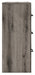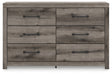 Details Made with engineered wood (MDF/particleboard/plywood) and decorative laminate for the right balance of affordability and durability, Weathered gray finish over replicated oak grain, Decorative laminate replicates natural or man-made material surfaces with consistent color, pattern and texture, Large-scale dark colored handles, 6 smooth-gliding drawers, Drawer interiors are lined with a faux linen laminate for a clean, finished look, Safety is a top priority, clothing storage units are designed to meet the most current standard for stability, ASTM F 2057 (ASTM International), Drawers extend out to accommodate maximum access to drawer interior while maintaining safety, Minor assembly required
