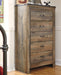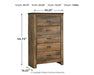 | Details | Made of engineered wood (MDF/particleboard) and decorative laminate, Warm rustic plank finish over replicated oak grain with authentic touch, Antiqued bronze-tone hardware, 5 smooth-operating drawers, Nailhead accents, Safety is a top priority, clothing storage units are designed to meet the most current standard for stability, ASTM F 2057 (ASTM International), Drawers extend out to accommodate maximum access to drawer interior while maintaining safety, Assembly required | |
