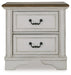 Traditional design. Casual appeal. You can have it all with this nightstand. A relaxed two-tone aesthetic merges with ornate profiled drawer fronts and pilasters to give the distinctive piece an allure all its own. Expansive drawers with quality dovetail construction and dark bronze-tone hardware reflect attention to detail from the inside out.