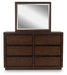 | Details | PCB857B7: Includes canopy, upholstered headboard, footboard, rails, posts and slats, Made with hardwood solids, mango wood veneer and MDF substrates , Side rails feature laminated solid hardwood slat support rails (or LVL) with glued and screwed blocking for added strength, Complex, rich dark brown finish, Foam headboard cushion with polyester upholstery , Measure room, including ceiling height, to ensure bed clears fans and light fixtures, Foundation/box spring required, sold separately , Mattress available, sold separately , USB-A and USB-C charging ports, Power cord included; UL Listed, Assembly required, PCB857B1: Made with hardwood solids, mango wood veneer and MDF substrates , Complex, rich dark brown finish, Full-length metal rail pulls with matte black finish, 6 smooth-gliding drawers with fully finished interiors, dovetail construction and heavy-duty ball-bearing side glides (top drawers felt lined), Mirror attaches to back of dresser, Soft rounded pilasters, Raised plinth base, | |