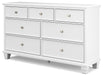This dresser exudes timeless casual design that's ready to define your personal space. Its clean, contemporary white finish, framed drawer fronts and round metal knobs easily adapt to a variety of interiors. Featuring seven storage drawers with dovetail construction and traditional tapered feet, this piece is sure to bring elegant simplicity to your bedroom.