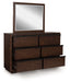 | Details | PCB857B6: Includes canopy, upholstered headboard, footboard, rails, posts and slats, Made with hardwood solids, mango wood veneer and MDF substrates , Side rails feature laminated solid hardwood slat support rails (or LVL) with glued and screwed blocking for added strength, Complex, rich dark brown finish, Foam headboard cushion with polyester upholstery , Measure room, including ceiling height, to ensure bed clears fans and light fixtures, Foam cushion with polyester upholstery , Foundation/box spring required, sold separately , Mattress available, sold separately , USB-A and USB-C charging ports, Power cord included; UL Listed, Assembly required, PCB857B1: Made with hardwood solids, mango wood veneer and MDF substrates , Complex, rich dark brown finish, Full-length metal rail pulls with matte black finish, 6 smooth-gliding drawers with fully finished interiors, dovetail construction and heavy-duty ball-bearing side glides (top drawers felt lined), Mirror attaches to back of dresser, Soft rounded pilasters, Raised plinth base, PCB857-92: Made with hardwood solids, mango wood veneer and MDF substrates, Complex, rich dark brown finish, Metal rail pulls with matte black finish, 2 smooth-gliding drawers with fully finished interiors, dovetail construction and heavy-duty ball-bearing side glides (top drawer felt lined), Soft rounded pilasters, Raised plinth base, | |