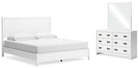 | Details | B427B8: Includes king panel headboard, footboard, rails and slats, Made with hardwood solids, okoume veneer and MDF substrates, White finish, Foundation/box spring required, sold separately, Mattress available, sold separately, Assembly required, B427B1: Includes dresser and mirror, Made with hardwood solids, okoume veneer and MDF substrates, White finish, 6 drawers with dovetail construction and metal center guides, Hardware with dark finish, Drawer interiors are lined with a wood grain laminate for a clean, finished look, Mirror attaches to back of dresser, | |