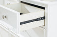 | Details | B680B4: Includes king panel headboard, footboard and rails, Made with hardwood solids and MDF substrate, White painted finish, Tapered feet, Foundation/box spring required, sold separately, Mattress available, sold separately, Assembly required, Bed is compatible with an adjustable base, B680B1: Includes dresser and mirror, Made with hardwood solids and MDF substrate, White painted finish, 7 smooth-gliding drawers with dovetail construction and ball-bearing side glides, Round metal drawer knobs with satin nickel-tone finish, Tapered feet, Mirror attaches to back of dresser, Assembly required, B680-92: Made with hardwood solids and MDF substrate, White painted finish, Round metal drawer knobs with satin nickel-tone finish, Tapered feet, Framed drawer fronts, 2 smooth-gliding drawers with dovetail construction and ball-bearing side glides, | |