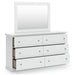 | Details | B139B47: Includes panel headboard/footboard and rails, Made with engineered wood (MDF/particleboard/plywood) and decorative laminate for the right balance of affordability and durability, Replicated solid white paint, Decorative laminate replicates natural or man-made material surfaces with consistent color, pattern and texture, Foundation/box spring required, sold separately, Mattress available, sold separately, Assembly required, B139B40: Includes dresser and mirror, Made of engineered wood (MDF/particleboard), Knobs with pewter-tone finish, Scalloped moulding, 6 smooth-operating drawers, Includes tipover restraint device, Mirror attaches to back of dresser; can also be mounted on wall horizontally or vertically, Safety is a top priority, clothing storage units are designed to meet the most current standard for stability, ASTM F 2057 (ASTM International), Drawers extend out to accommodate maximum access to drawer interior while maintaining safety, B139-46: Made of engineered wood (MDF/particleboard), Pewter-tone knobs, Scalloped moulding, 5 smooth-operating drawers, Small Space Solution, Includes tipover restraint device, Safety is a top priority, clothing storage units are designed to meet the most current standard for stability, ASTM F 2057 (ASTM International), Drawers extend out to accommodate maximum access to drawer interior while maintaining safety, B139-91: Made of engineered wood (MDF/particleboard), Pewter-tone knobs, 1 smooth-operating drawer, 1 storage cubby, Scalloped moulding, Small Space Solution, | |