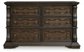From its ornamental appliques to its large scale, this dresser makes a bold statement. Spacious drawers store your clothes, jewelry and more in stunning style. The look is timeless. The feel? Right at home.