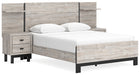 Details B1036B5: Includes queen panel headboard, footboard, rails, headboard extensions and 2 nightstands, Made with engineered wood (MDF/particleboard/plywood) and decorative laminate for the right balance of affordability and durability, Light gray finish over a replicated oak grain with authentic touch; base has matte black finish with subtle replicated wood grain, Decorative laminate replicates natural or man-made material surfaces with consistent color, pattern and texture, Handles with matte black finish, Headboard extensions mount to nightstands; each includes shelf with warm LED lighting underneath, 2 smooth-gliding drawers; drawer interiors are lined with a faux linen laminate for a clean, finished look, Each nightstand has Qi wireless charging and 1 USB charging port, Foundation/box spring required, sold separately; mattress available, sold separately, Power cord included; UL Listed, Assembly required, B1036B1: Includes dresser and mirror, Made with engineered wood (MDF/particleboard/plywood) and decorative laminate for the right balance of affordability and durability, Light gray finish over a replicated oak grain with authentic touch; base has matte black finish with subtle replicated wood grain, Decorative laminate replicates natural or man-made material surfaces with consistent color, pattern and texture, Handles with matte black finish, 6 smooth-gliding drawers, Drawer interiors are lined with a faux linen laminate for a clean, finished look, Mirror attaches to back of dresser; can also be hung horizontally or vertically, Safety is a top priority, clothing storage units are designed to meet the most current standard for stability, ASTM F 2057 (ASTM International), Drawers extend out to accommodate maximum access to drawer interior while maintaining safety, Assembly required,