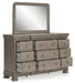 Details B924B2: Includes panel headboard and sleigh footboard with rails, Made with hardwood solids, birch veneer and MDF substrate, Light gray finish enhances the natural wood grain, Foundation/box spring required, sold separately, Mattress available, sold separately, Assembly required, B924B1: Includes dresser and mirror, Made with hardwood solids, birch veneer and MDF substrate, Light gray finish enhances the natural wood grain, Ring pull hardware, 9 drawers with fully finished interiors, dovetail construction and ball-bearing side glides, Jewelry drawer conveniently located in the center valance, Mirror attaches to back of dresser,