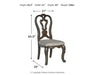 | Details | D947D5: Made with hardwood solids, oak and ash swirl veneers, MDF substrates and cast resin components, Dark brown finish, Double pedestal base, Removable center leaf, Table extends by pulling both ends and dropping in leaf, Shaped metal stretcher bar, Dining chairs sold separately, Seats up to 8, Assembly required, D947-01: Made with wood and cast resin, Dark brown finish, Foam cushioned seat with polyester upholstery, Ornate cabriole legs, Assembly required, | |