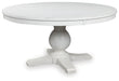 | Details | Includes dining table top and base, Top made with hardwood solids, mango wood veneer and MDF substrate, Cast resin pedestal base, Antiqued white finish, Assembly required | |