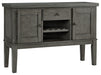 Cool and on-trend. This versatile server sports an antiqued gray color for a contemporary-yet-casual feel. The server features two cabinets, a smooth-gliding drawer and an open cubby with a wine rack, making it a breeze to clear away clutter and expand your serving space. Dining with friends and family has never been so stylish.