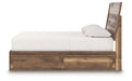 Nostalgic style, retooled for today’s trends. This king panel bed with storage puts an elevated twist on mod aesthetics. Its warm brown tones reflect the mid-century vibes you love, while the simple panel design incorporates contemporary motifs. Ultra-spacious storage in the footboard keeps clutter out of sight. Integrated drawer handles round out the look in sleek style. With this bed, you can build your bedroom into a modern haven with a touch of retro-cool flair.