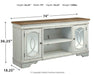 Elevating the art of traditional cottage styling, this TV stand with fireplace option is beautifully in tune with your taste. Antiqued two-tone aesthetic blends a chipped white with a distressed wood tone top for added charm. Cabinet doors’ decorative fretwork over mirrored glass adds a lovely twist. Compatible with W100-121 fireplace insert (sold separately).