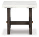 Dressed to thrill, this simply stunning end table offers a high-design look at a down-to-earth price. Ultra-sleek lines are accentuated with a dark waxy brown oak finish that’s so easy on the eyes. Clean-lined and modern, the plinth base and natural marble tabletop showcase quality craftsmanship and attention to detail. This table is the perfect sofa companion for a living room or family space, with a timeless look that's made to last.