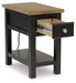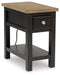 Details Made with acacia solids, acacia veneer and MDF substrate, Tabletop with light wood-tone finish, Dark chocolate brown body, 1 smooth-gliding drawer, 110V power supply with USB-A and USB-C charging ports, Power cord included; UL Listed