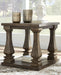 Homey. Hearty. Heavenly hued. Luring with a distressed weathered gray finish and square baluster legs set on a broad lower shelf for great presence, the Johnelle end table is sure to make your homestead feel that much more like home. The look is beautified with elm veneers and a framed and plank-effect tabletop for a richly crafted masterpiece made for years of satisfaction.