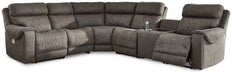 | Details | ONLY AVAILABLE AS PICTURED. Includes 6 pieces: left-arm facing power recliner, power armless recliner, armless chair, wedge, console and right-arm facing power recliner, "Left-arm" and "right-arm" describe the position of the arm when you face the piece, One-touch power control with adjustable positions, Easy View™ adjustable headrest, power lumbar support and zero-draw USB plug-in, Corner-blocked frame with metal reinforced seat, Attached back and seat cushions, High-quality foam cushions wrapped in poly fiber, Faux leather upholstery, Pop-out cup holders, Console with touchscreen, Wireless audio; headphone accessible, 110V power supply with USB charging ports, Power cord included; UL Listed | |