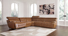 Details Includes 5 pieces: left-arm facing power recliner, power armless recliner, wedge, armless chair and right-arm facing power recliner, "Left-arm" and "right-arm" describe the position of the arm when you face the piece, One-touch power control with adjustable positions, USB-C fast charging and zero-draw USB port, Zero-draw technology only consumes power when the USB receptacle is in use, Zero-gravity mechanism allows optimum reclining comfort with infinite reclining positions at the touch of a button, Corner-blocked frame with metal reinforced seats, Attached cushions, High-quality foam cushions wrapped in poly fiber, 100% top grain leather covers inside areas such as the back, seat and arm cushions; skillfully matched faux leather covers the remaining areas, Due to its natural origin, real leather can show individual characteristics such as healed scars, growth marks, grain variation and shade variation, Natural variations make each hide unique and do not detract from the wearing qualities of leather, Easy View™ manual adjustable headrest, Zero wall recliner design requires minimal space between wall and chair back