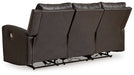 Experience modern luxury with this power reclining sofa. The soft-to-the-touch leather and faux leather upholstery brings ultimate relaxation at a price you can afford. With sleek arms and a plush, pillowy back, the sofa merges comfort and support with a high-style design.