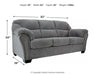 | Details | Corner-blocked frame, Attached back and loose seat cushions, High-quality foam cushions wrapped in poly fiber, Polyester upholstery, Black nickel-tone nailhead trim, Exposed feet with faux wood finish, Platform foundation system resists sagging 3x better than spring system after 20,000 testing cycles by providing more even support, Smooth platform foundation maintains tight, wrinkle-free look without dips or sags that can occur over time with sinuous spring foundations | |