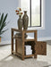 Embrace simply stylish sofa-side function with this chairside end table. Keep entertainment essentials like remotes, coasters and more close with the handy storage cabinet. Battery running low? Built-in USB ports keep easy charging at your fingertips. And with the table's rustic brown finish, it has the versatility to pair with aesthetics from casual to farmhouse.