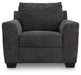 This chair personifies contemporary comfort. Its clean-lined frame and neutral color lend must-have versatility. Softly textured fabric makes it that much more inviting. A welcome combination of chic style and a cozy feel, this piece completes your living room with modern flair.