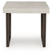 | Details | Includes coffee table and end table, Made with hardwood solids, decorative melamine laminate and MDF substrate, Legs finished in dark espresso brown color with dark wood grain contrast, Durable light gray faux cement laminate on tops, Assembly required | |