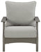It’s the dawn of a new day for gray. Embrace the style trend with this outdoor lounge chair. Crafted of HDPE material that combines the exceptional durability and weather resistance you need with the “wood look” you love, this comfortably cushioned outdoor chair takes outdoor living to a whole new level. Rest assured, the thick seat and back cushions are wrapped in our exclusive Nuvella® high-performance fabric that’s fade resistant, stain resistant and a breeze to clean.
