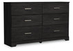 With its clean-lined look and modern attitude, this dresser is a fresh style awakening. A warm charcoal hue over replicated oak grain easily complements other furniture finishes. Smooth drawer fronts with antiqued pewter-tone handles complete the aesthetic.