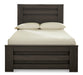 Priced to entice and styled to impress, this alluring queen panel bed is urban sophistication with a decidedly relaxed air. It’s got the crisp, clean lines of a contemporary piece, but with an earthy element. Deep, horizontal grooves infuse depth and dimension, a replicated oak grain effect gives the charcoal gray finish warmth and character. Mattress and foundation/box spring sold separately.