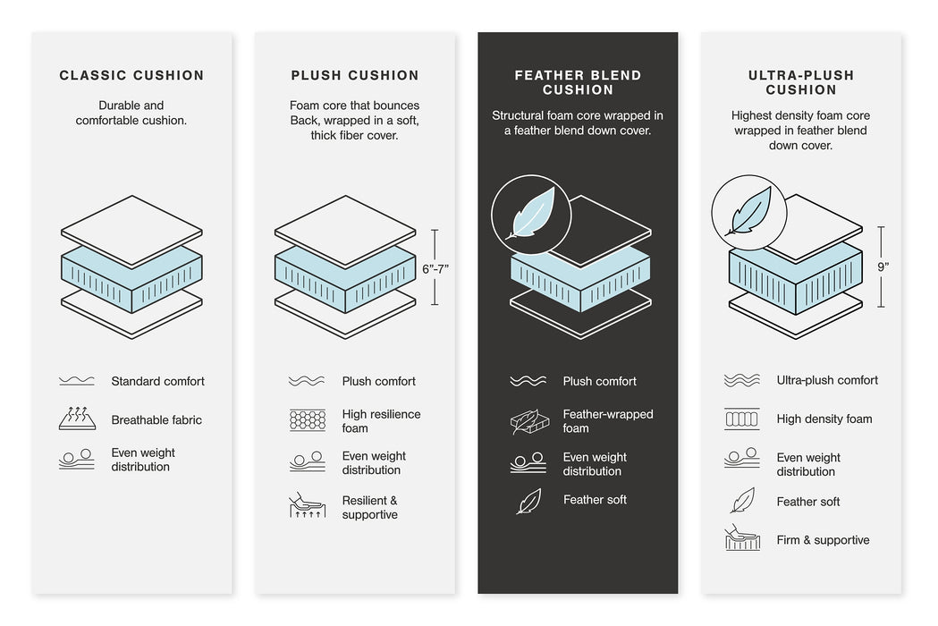 | Details | Includes 4 modular pieces: left-arm facing corner chair, armless chair, wedge and right-arm facing corner chair, "Left-arm" and "right-arm" describe the position of the arm when you face the piece, Modular pieces can float anywhere; sides are finished (with no connectors), Corner-blocked frame, Loose back cushions and attached seat cushions, Feather-fiber blend cushion, Arm bolster pillows included, 100% top grain leather covers inside areas such as the back, seat and arm cushions; skillfully matched faux leather covers the remaining areas, Due to its natural origin, real leather can show individual characteristics such as healed scars, growth marks, grain variation and shade variation, Natural variations make each hide unique and do not detract from the wearing qualities of leather, Non-skid legs, Platform foundation system resists sagging 3x better than spring system after 20,000 testing cycles by providing more even support, Smooth platform foundation maintains tight, wrinkle-free look without dips or sags that can occur over time with sinuous spring foundations | |