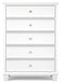 | Details | Made with hardwood solids and MDF substrate, White painted finish, Round metal drawer knobs with satin nickel-tone finish, Tapered feet, Framed drawer fronts, 5 smooth-gliding drawers with dovetail construction and ball-bearing side glides | |