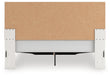 Details Includes upholstered panel headboard, storage footboard, platform rails and roll slats , Made with engineered wood (MDF/particleboard/plywood) and decorative laminate for the right balance of affordability and durability , Matte white finish with subtle replicated wood grain , Decorative laminate replicates natural or man-made material surfaces with consistent color, pattern and texture , Polyester upholstery, Chrome-tone and glitter accents, Large-scale chrome-tone handles with faceted details, 2 smooth-gliding drawers , Drawer interiors are lined with a faux linen laminate for a clean, finished look, Bed does not require additional foundation/box spring; accommodates most zero clearance adjustable bases with the addition of a bunkie board, Mattress available, sold separately, Minor assembly required